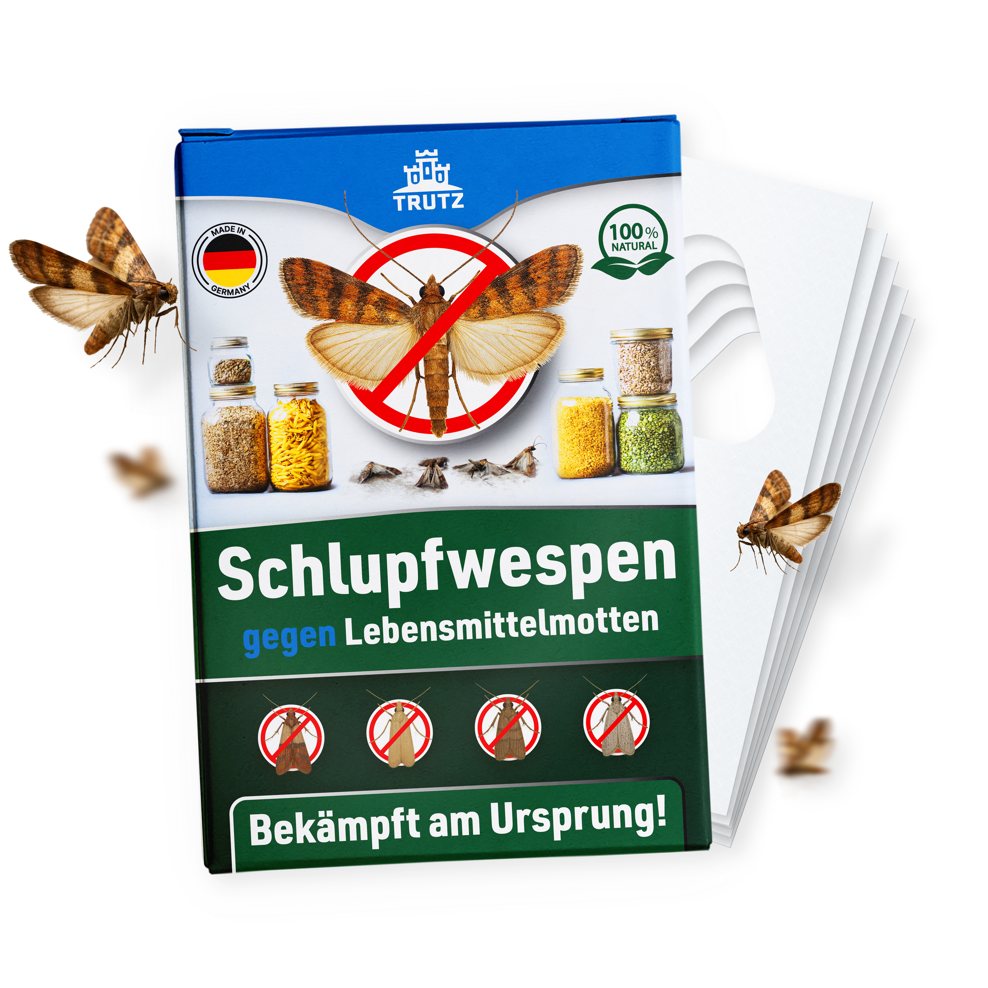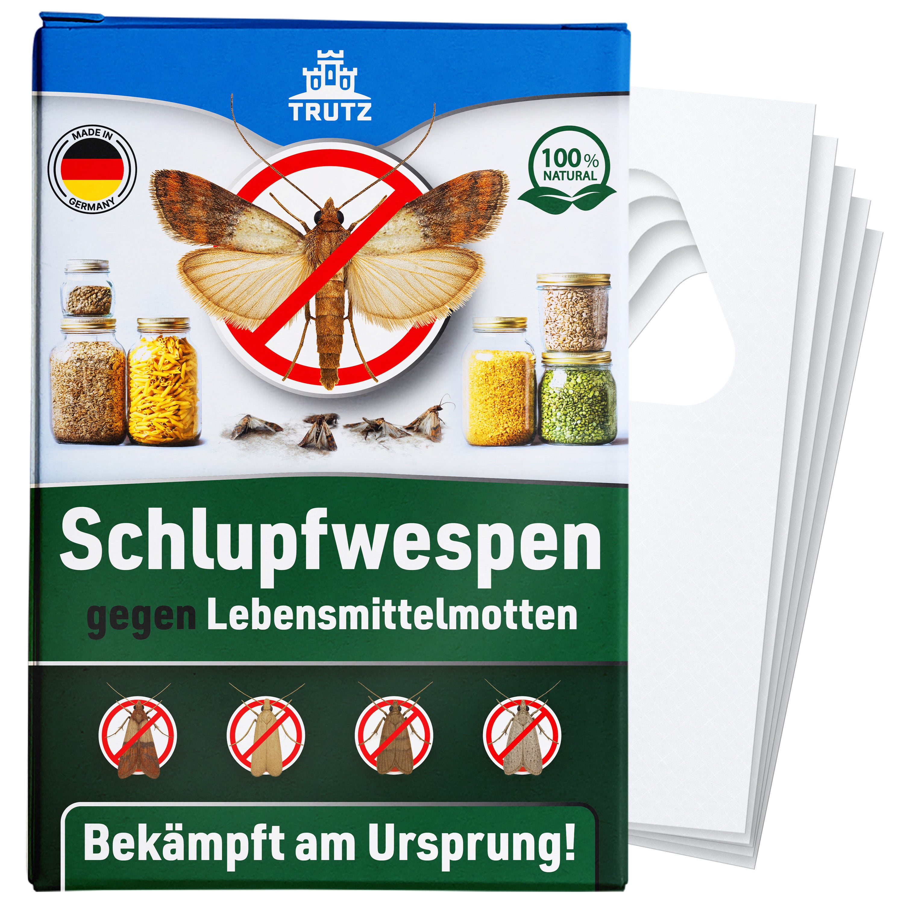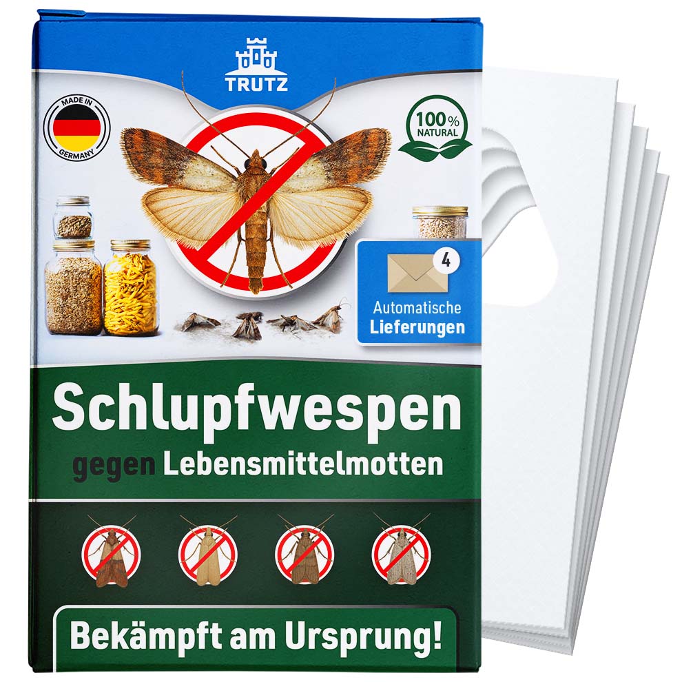 Mit unseren TRUTZ Schlupfwespen bekämpfen Sie Motten natürlich, sicher und dauerhaft – ganz ohne Chemie und ohne Aufwand.